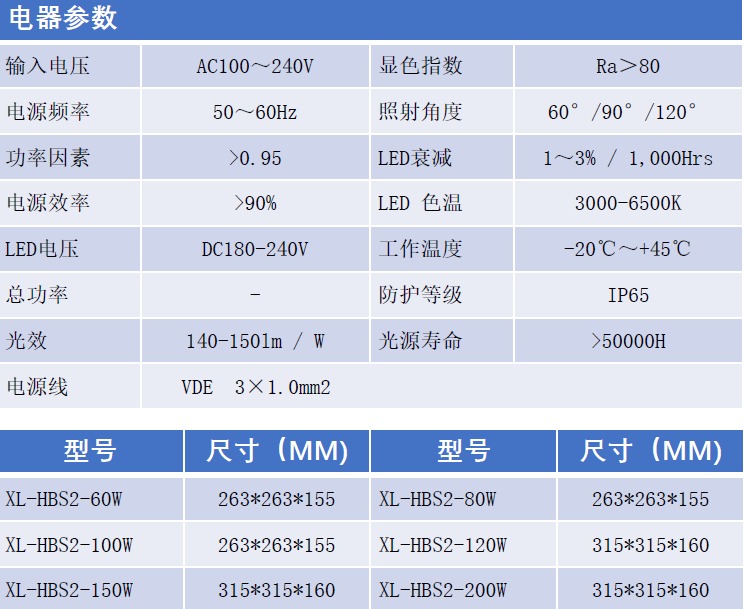 【1】采用3030 LED光源,LED光效>140LM/W,显色指数Ra>80;